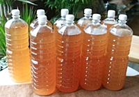 용기에 담은 감식초 원액에 양조 식초를 넣습니다. 용기의 입구에 방충망을 씌워 벌레가 들어가지 않도록 하고, 뚜껑 없이 35 ~ 40도 정도의 온도에서 두 번째 발효를 합니다.