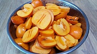 감을 용기에 넣고 으깹니다. 단단한 감은 절구 등으로 으깨줍니다.